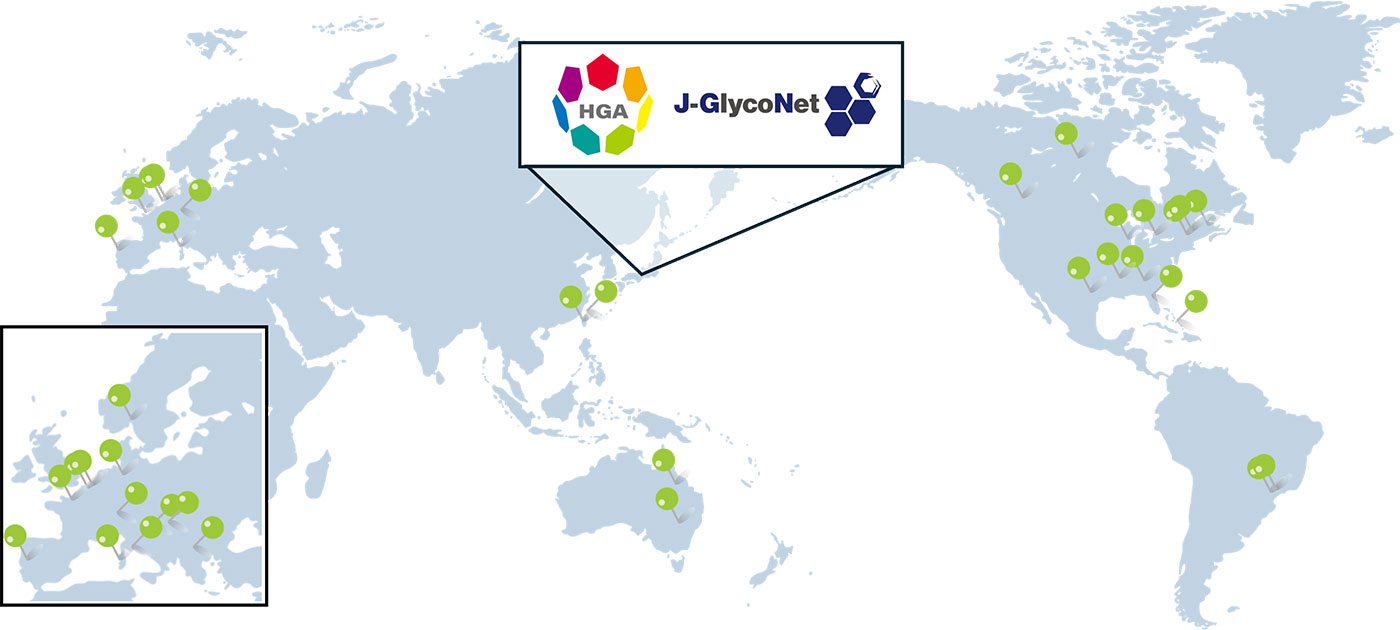 The Human Glycome Atlas Project (HGA) aims to establish an international hub for glycoscience research based on its founding principles. Together with J-GlycoNet*, we are building domestic and international glycoscience research networks to advance collaborative research and personnel exchanges. Furthermore, we promote interdisciplinary research centered around the “Open Mix Lab.”