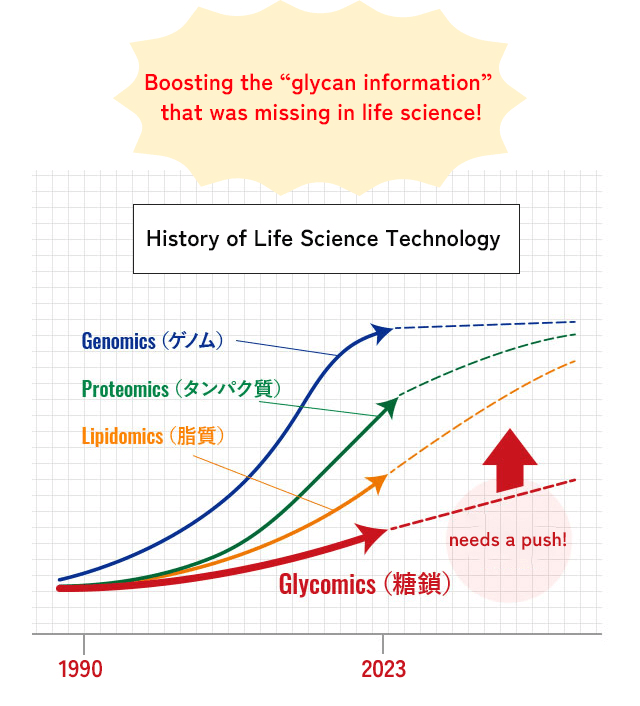 Three life chains (genome, protein, and glycan) are necessary for biological processes. However, regarding the third life chain, “glycan,” our information is far less than the other life chains.